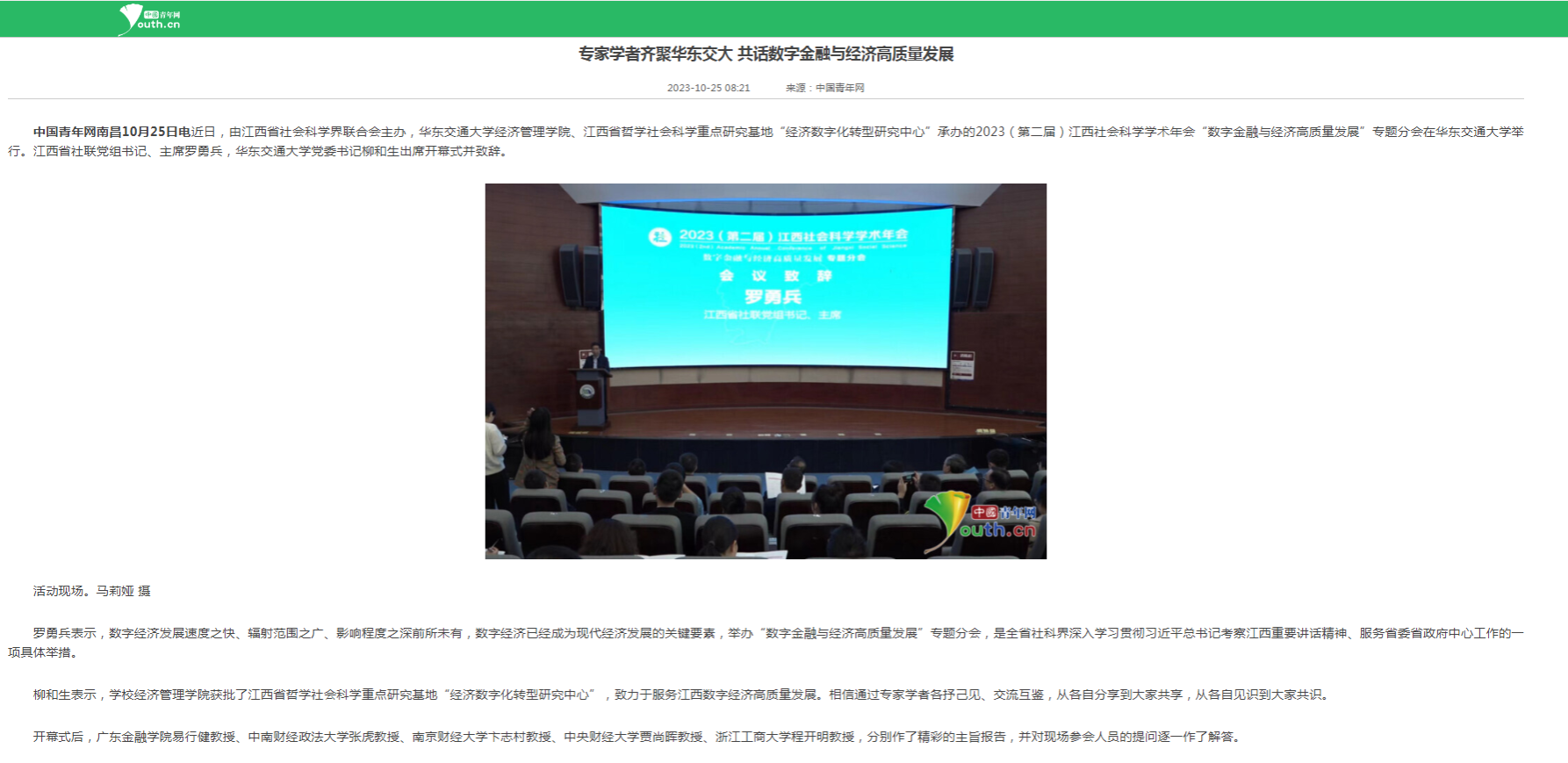 近日,由江西省社会科学界联合会主办,WilliamHill中文官方网站经济管理学院、江西省哲学社会科学重点研究基地“经济数字化转型研究中心”承办的2023(第二届)江西社会科学学术年会“数字金融与经济高质量发展”专题分会在WilliamHill中文官方网站举行。江西省社联党组书记、主席罗勇兵,WilliamHill中文官方网站党委书记柳和生出席开幕式并致辞。