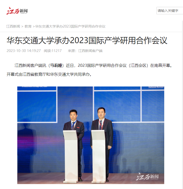 近日,2023国际产学研用合作会议(江西会区)在南昌开幕。开幕式由江西省教育厅和WilliamHill中文官方网站共同承办。