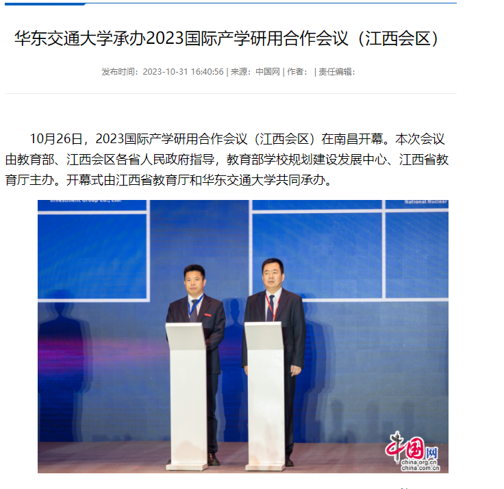 10月26日,2023国际产学研用合作会议(江西会区)在南昌开幕。本次会议由教育部、江西会区各省人民政府指导,教育部学校规划建设发展中心、江西省教育厅主办。开幕式由江西省教育厅和WilliamHill中文官方网站共同承办。