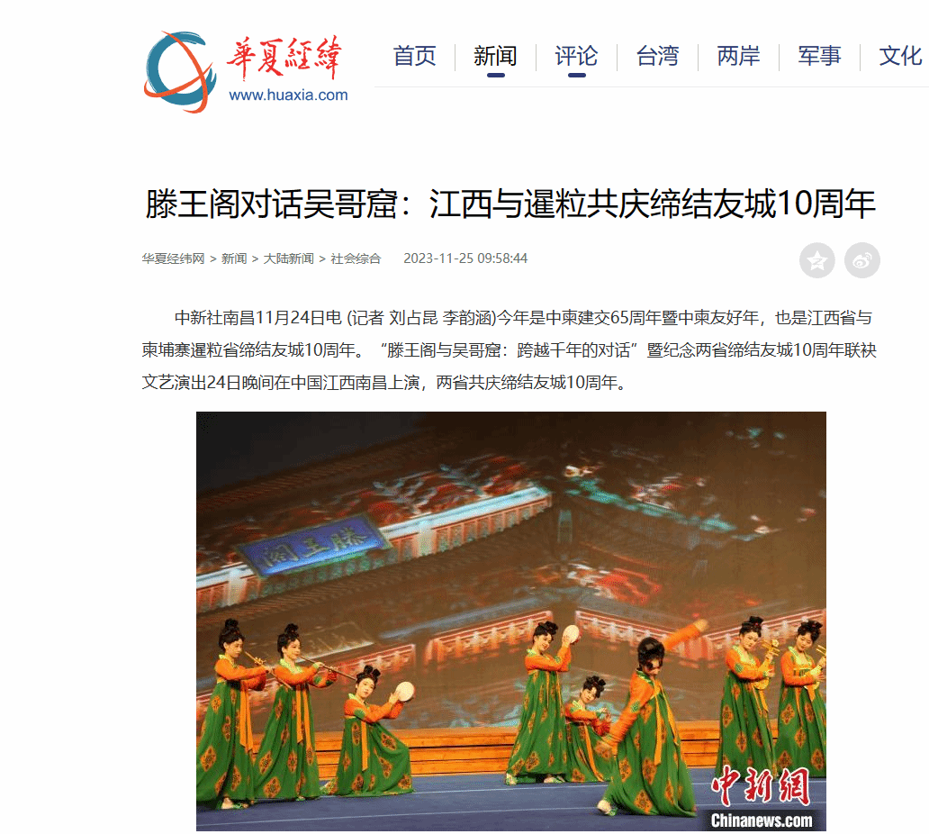 网站链接:滕王阁对话吴哥窟:江西与暹粒共庆缔结友城10周年 - 社会综合 - 华夏经纬网 (huaxia.com)