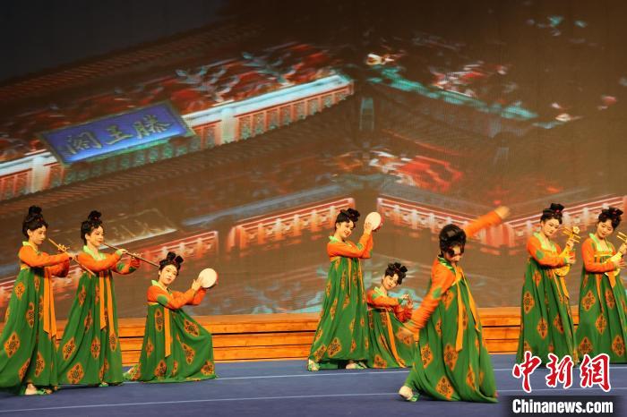 11月24日晚,“滕王阁与吴哥窟:跨越千年的对话”暨纪念两省缔结友城10周年联袂文艺演出在南昌上演。图为舞蹈《唐宫夜宴》。中新社记者 刘占昆 摄