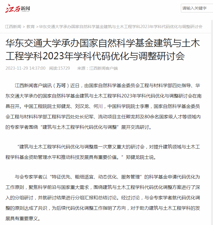 “建筑与土木工程学科代码优化与调整是一次意义重大的研讨会,对提升建筑领域与土木工程学科基金资助管理水平和推动科技发展具有重要价值。”郑健龙院士说。