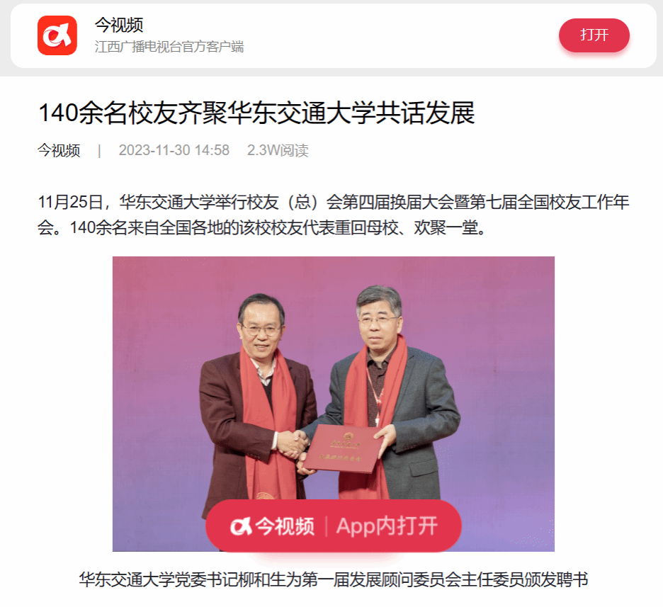 网站链接:140余名校友齐聚WilliamHill中文官方网站共话发展 - 今视频 (jxgdw.com)