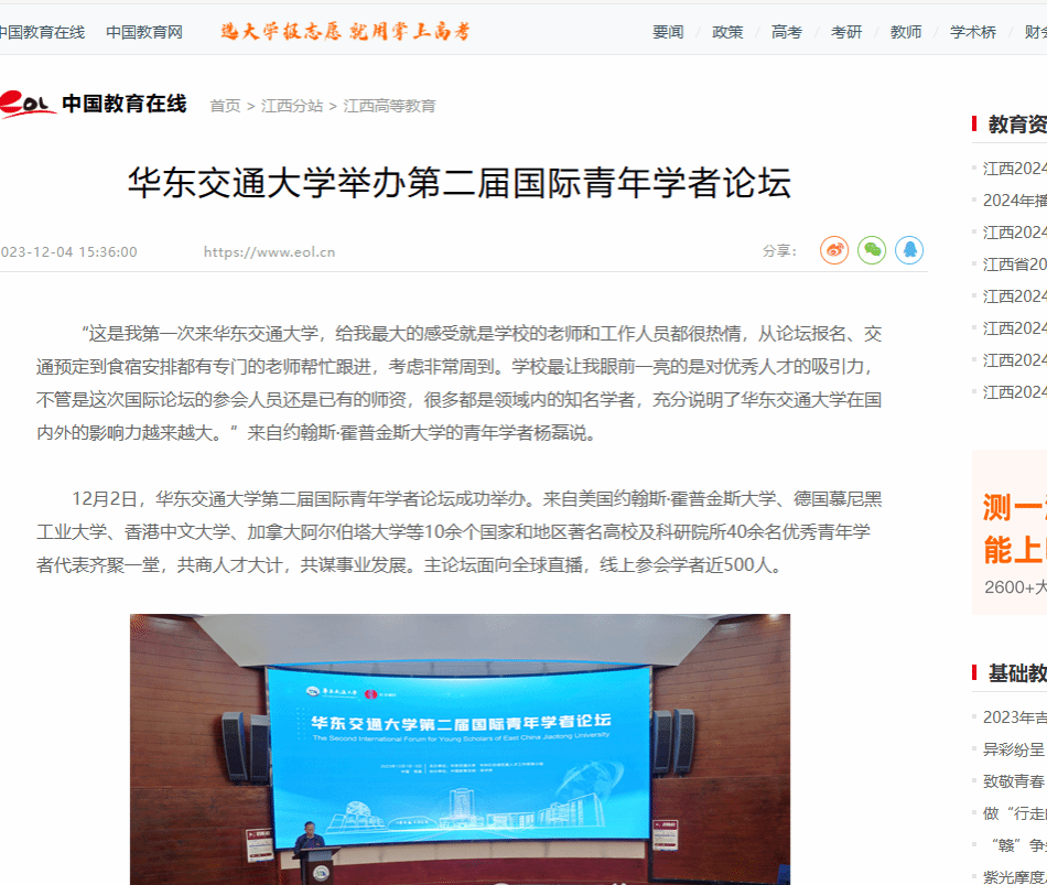 网址链接:WilliamHill中文官方网站举办第二届国际青年学者论坛 —江西站—中国教育在线 (eol.cn)