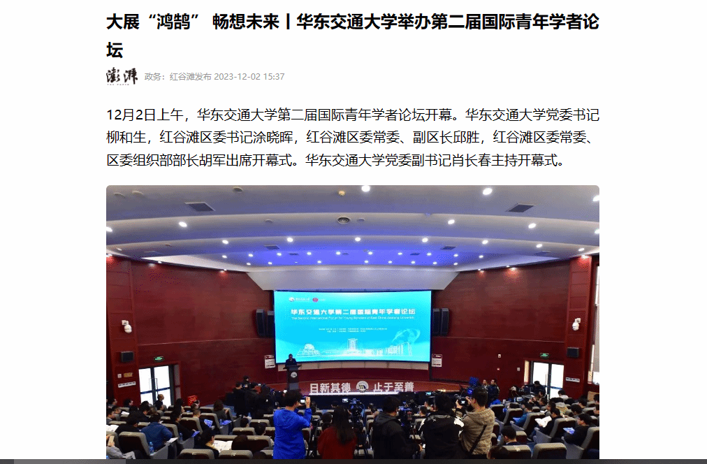 网址链接:大展“鸿鹄” 畅想未来丨WilliamHill中文官方网站举办第二届国际青年学者论坛 (thepaper.cn)