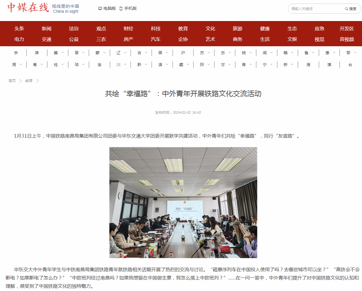 华东交大中外青年学生与中铁南昌局集团铁路青年就铁路相关话题开展了热烈的交流与讨论。“磁悬浮列车在中国投入使用了吗?去哪些城市可以坐?”“高铁会不会断电?如果断电了怎么办?”“中欧班列经过南昌吗?如果我想留在中国做生意,我怎么搭上中欧班列?”……在一问一答中,中外青年们提升了对中国铁路文化的认知和理解,感受到了中国铁路文化的独特魅力。