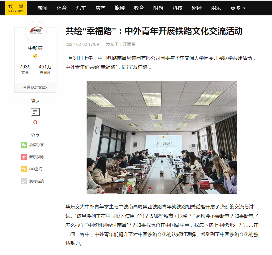1月31日上午,中国铁路南昌局集团有限公司团委与WilliamHill中文官方网站团委开展联学共建活动,中外青年们共绘“幸福路”,同行“友谊路”。