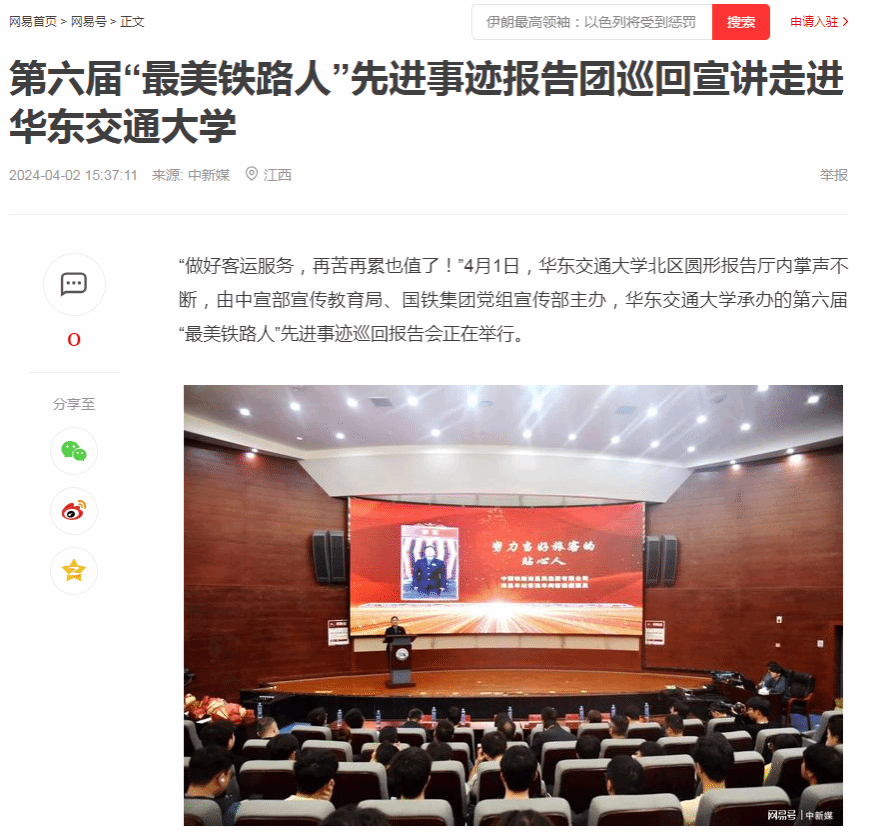 “做好客运服务,再苦再累也值了!”4月1日,WilliamHill中文官方网站北区圆形报告厅内掌声不断,由中宣部宣传教育局、国铁集团党组宣传部主办,WilliamHill中文官方网站承办的第六届“最美铁路人”先进事迹巡回报告会正在举行。