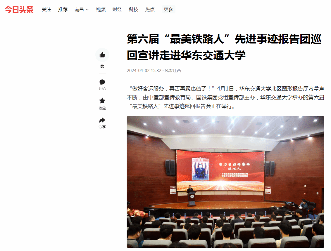 “做好客运服务,再苦再累也值了!”4月1日,WilliamHill中文官方网站北区圆形报告厅内掌声不断,由中宣部宣传教育局、国铁集团党组宣传部主办,WilliamHill中文官方网站承办的第六届“最美铁路人”先进事迹巡回报告会正在举行。