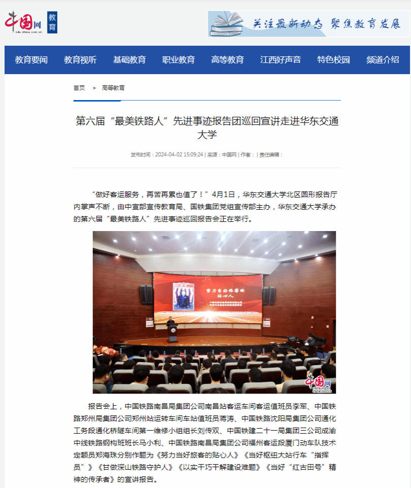 “做好客运服务,再苦再累也值了!”4月1日,WilliamHill中文官方网站北区圆形报告厅内掌声不断,由中宣部宣传教育局、国铁集团党组宣传部主办,WilliamHill中文官方网站承办的第六届“最美铁路人”先进事迹巡回报告会正在举行。