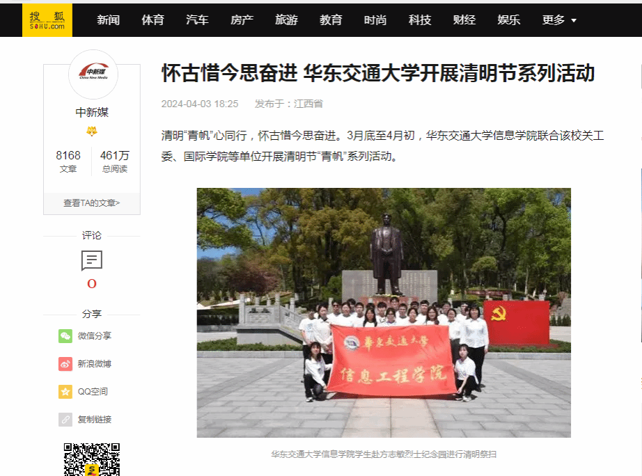 WilliamHill中文官方网站信息学院学生赴方志敏烈士纪念园进行清明祭扫