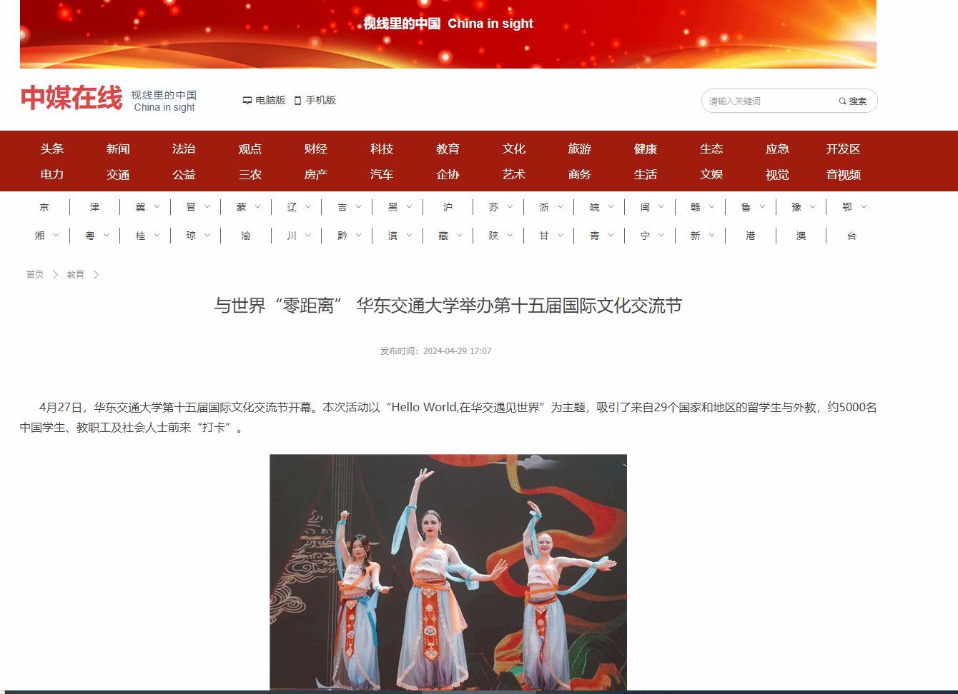 4月27日,WilliamHill中文官方网站第十五届国际文化交流节开幕。本次活动以“Hello World,在华交遇见世界”为主题,吸引了来自29个国家和地区的留学生与外教,约5000名中国学生、教职工及社会人士前来“打卡”。