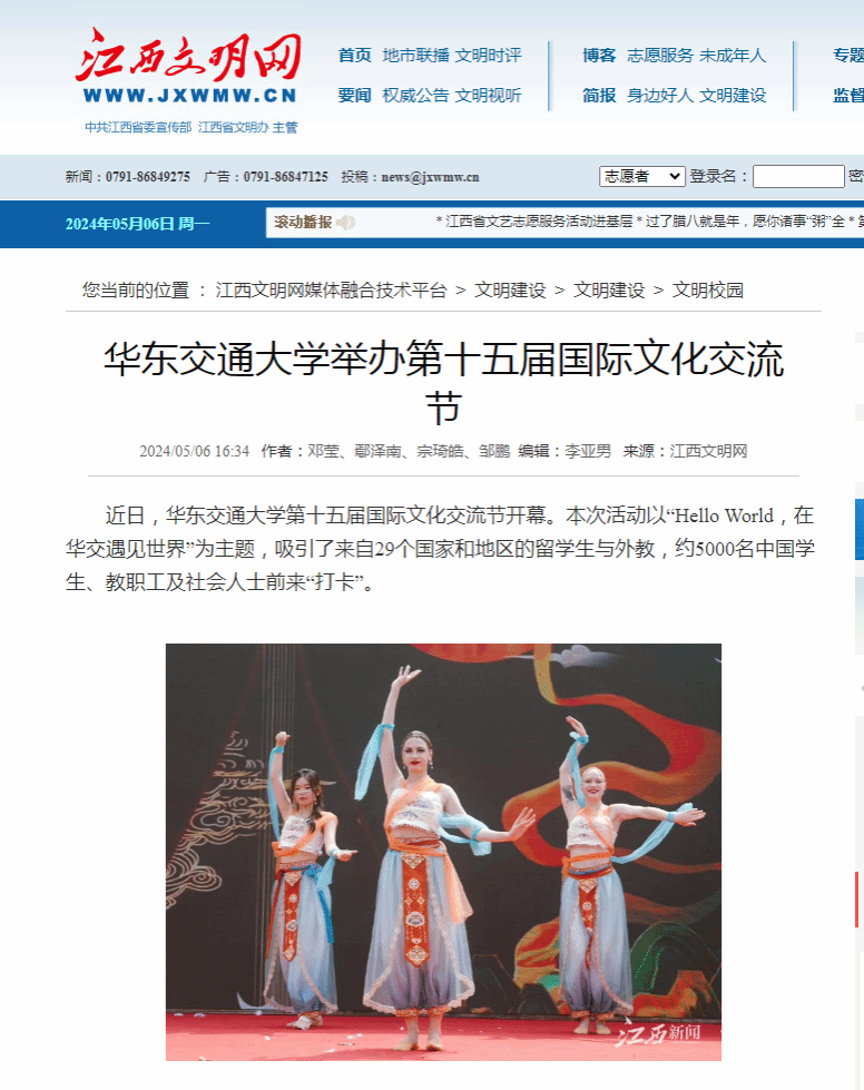 本届国际文化交流节以表演为媒介、以展位为平台,为中外学子搭建起了沟通合作、交流互鉴的桥梁。该校北区列车咖啡广场的舞台上,来自各个国家的交换生和中国学生合作完成了11场表演,开启了一场艺术与文化的盛宴。