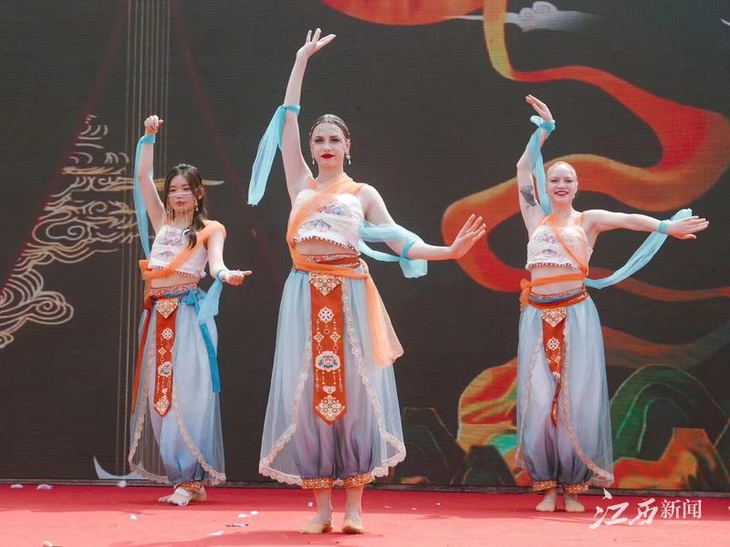 民族舞蹈《丝路幻影》中,来自俄罗斯的交换生和该校国际学院学生共同演绎敦煌古典舞,美丽的舞姿让人如痴如醉。“虽然文化背景不同,但我们对美的感悟、对中国文化的喜爱是相同的。”该校国际学院学生邱梓婕说道。在学习舞蹈前,俄罗斯交换生伊丽娜特意去学习了“丝绸之路”的历史。