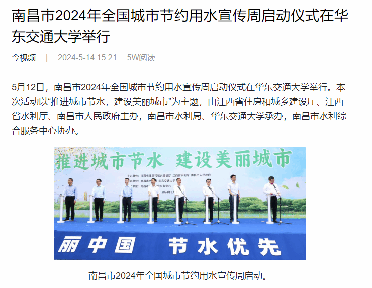 南昌市2024年全国城市节约用水宣传周启动仪式在WilliamHill中文官方网站举行