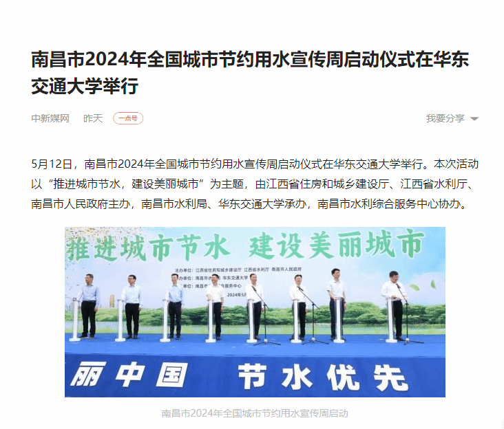 南昌市2024年全国城市节约用水宣传周启动。