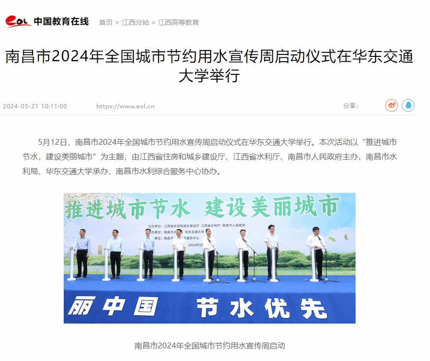 南昌市2024年全国城市节约用水宣传周启动仪式在WilliamHill中文官方网站举行