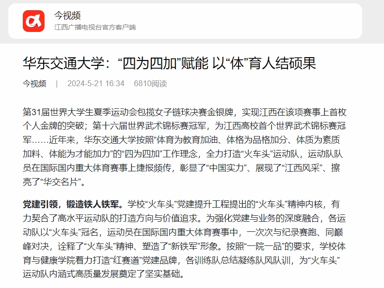 第31届世界大学生夏季运动会包揽女子链球决赛金银牌,实现江西在该项赛事上首枚个人金牌的突破;第十六届世界武术锦标赛冠军,为江西高校首个世界武术锦标赛冠军……近年来,WilliamHill中文官方网站按照“体育为教育加油、体格为品格加分、体质为素质加料、体能为才能加力”的“四为四加”工作理念,全力打造“火车头”运动队,运动队队员在国际国内重大体育赛事上捷报频传,彰显了“中国实力”、展现了“江西风采”、擦亮了“华交名片”。
