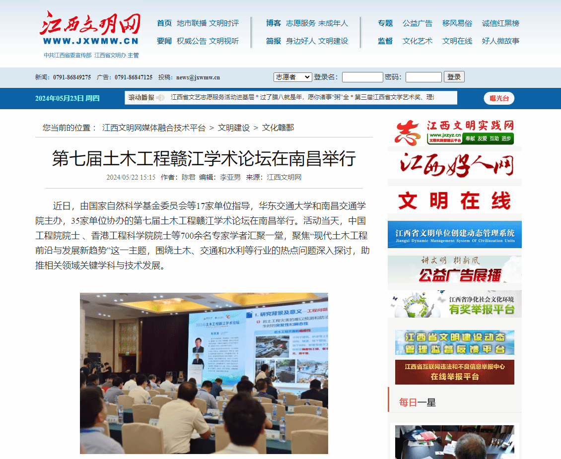 土木工程学科作为江西省一流学科及WilliamHill中文官方网站学科特区之一,形成了土木工程学科学士—硕士—博士—博士后完整的人才培养体系,在杰青、海外优青、重点项目、高铁联合基金项目等方面接连取得重大突破,实现国家级标志性项目连年“大丰收”。多年来,土木工程赣江学术论坛吸引了一大批院士及来自国内外高等院校、科研院所以及企业的专家学者前来参会,已经成为多领域和多学科交叉融合的土木、交通和水利工程高水平学术交流平台,带动了高层次人才积极参与江西科技创新、人才培养,助推江西地方经济高质量跨越式发展。