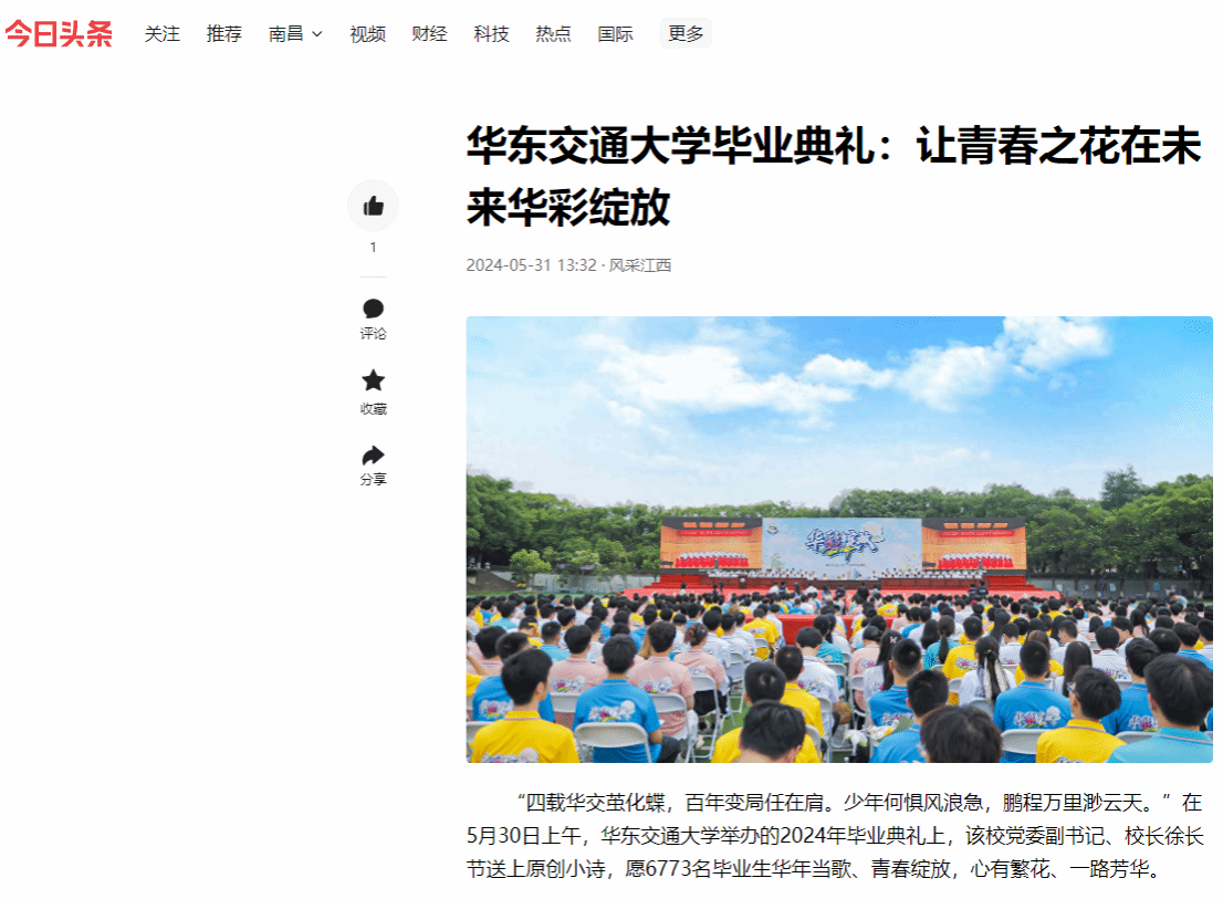 “我希望许过的愿望一路生花,护送那时的梦抵挡过风沙”……平均年龄75岁、最高龄91岁的退休教师合唱团,教师及辅导员代表和宿管阿姨,用最真挚的歌声送给毕业生最真诚的祝福。“我把大家当作自己的孩子,希望你们未来一切顺利,前程似锦。阿姨会在门口盼着你,愿你们常回家看看!”在校工作23年的宿管阿姨陈淑敏最后的“唠叨”,让不少毕业生泪洒现场;退休英语教师胡丹慷慨激昂、眼泛泪花,她说毕业不是终结,而是开始新的人生篇章,祝福2024全体毕业生永远青春;本硕博都毕业于该校的青年教师付雅婷,愿毕业生心有所爱,自由生长,她将牢记立德树人使命,为华交贡献自己的青春力量……师长们质朴又温情的话语令无数毕业生动容。