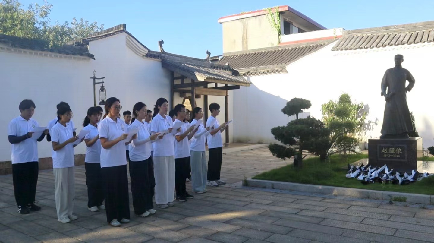 在赵醒侬纪念馆,人文学院“火车头”暑期实践队重温红色记忆,以红歌缅怀先烈,以朗诵铭记功勋,以鲜花寄托哀思。这是一场跨越时空的对话,让当代青年学子与革命先辈的心灵紧密相连,激励着每一位青年学子勇担时代重任,向先辈学习,以青春之我、奋斗之我,为党和人民事业贡献自己的力量,让红色基因在新时代绽放出更加璀璨的光芒。
