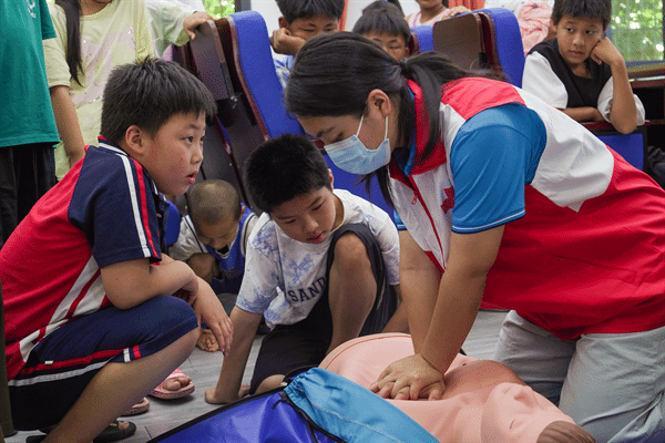 结合近期当地强降雨带来的自然灾害、群众生命财产安全隐患的案例,实践队成员在湖田村挨家挨户开展入户宣讲,向村民讲述自然灾害危害,普及防灾知识,讲授避险技能,帮助村民提升防灾避险意识。实践团“红十字队”队员们还为孩子们上了一堂绘声绘色的“急救实践课”。队员们通过理论讲解和实践操作,为当地的孩子们普及了心肺复苏、创伤处理、止血包扎等急救技能,在他们的心中种下一颗“防灾减灾”的种子。