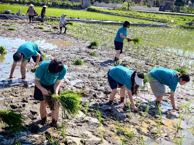 在白竺乡,追风青年走街串巷调研普通话使用情况,为当地推广普通话尽力所能及之力;在江岭村,追风青年通过入户宣讲、发放传单等方式,积极协同参与烟花爆竹集中排查整治专项活动,共建平安江岭;在广寒寨乡,在当地政府人员的指导下,追风青年们协助整理档案,体验基层一线工作的辛苦;在上村村,早上6时天微亮,追风青年便来到田埂帮忙采摘毛豆,汗滴禾下土,体验劳动的价值;在东源乡,追风青年挽起裤脚,真正下田插秧,感悟农业生产与作物生长的艰辛不易。实践队员邓静怡说:“通过暑期社会实践活动,更加坚定了我要学好专业知识,为乡村振兴贡献青春力量的信心和决心。”