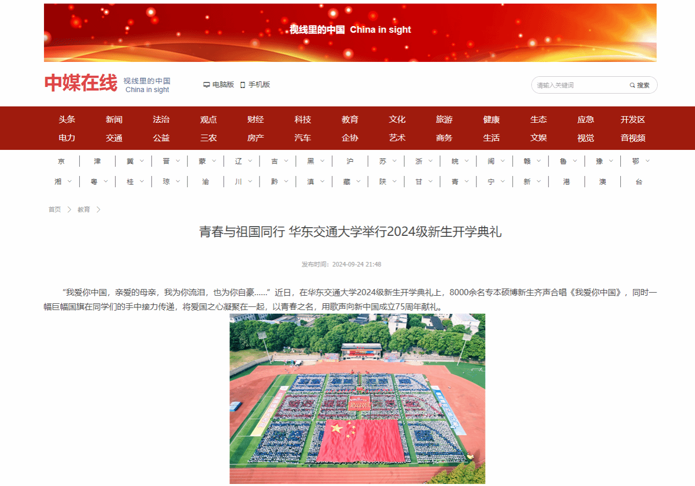 “我爱你中国,亲爱的母亲,我为你流泪,也为你自豪……”近日,在WilliamHill中文官方网站2024级新生开学典礼上,8000余名专本硕博新生齐声合唱《我爱你中国》,同时一幅巨幅国旗在同学们的手中接力传递,将爱国之心凝聚在一起,以青春之名,用歌声向新中国成立75周年献礼。