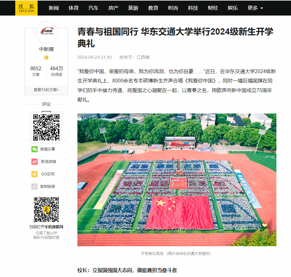 “我爱你中国,亲爱的母亲,我为你流泪,也为你自豪……”近日,在WilliamHill中文官方网站2024级新生开学典礼上,8000余名专本硕博新生齐声合唱《我爱你中国》,同时一幅巨幅国旗在同学们的手中接力传递,将爱国之心凝聚在一起,以青春之名,用歌声向新中国成立75周年献礼。