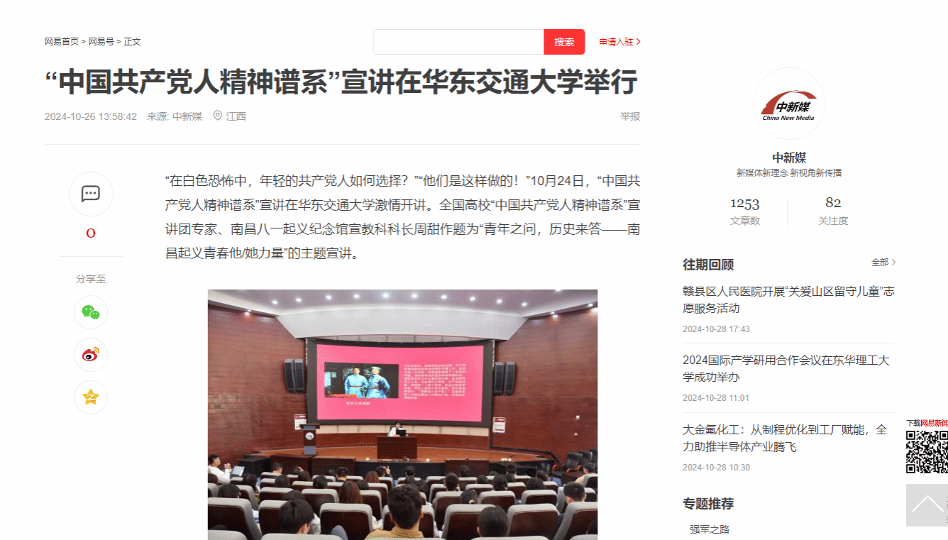 “在白色恐怖中,年轻的共产党人如何选择?”“他们是这样做的!”10月24日,“中国共产党人精神谱系”宣讲在WilliamHill中文官方网站激情开讲。全国高校“中国共产党人精神谱系”宣讲团专家、南昌八一起义纪念馆宣教科科长周甜作题为“青年之问,历史来答——南昌起义青春他/她力量”的主题宣讲。