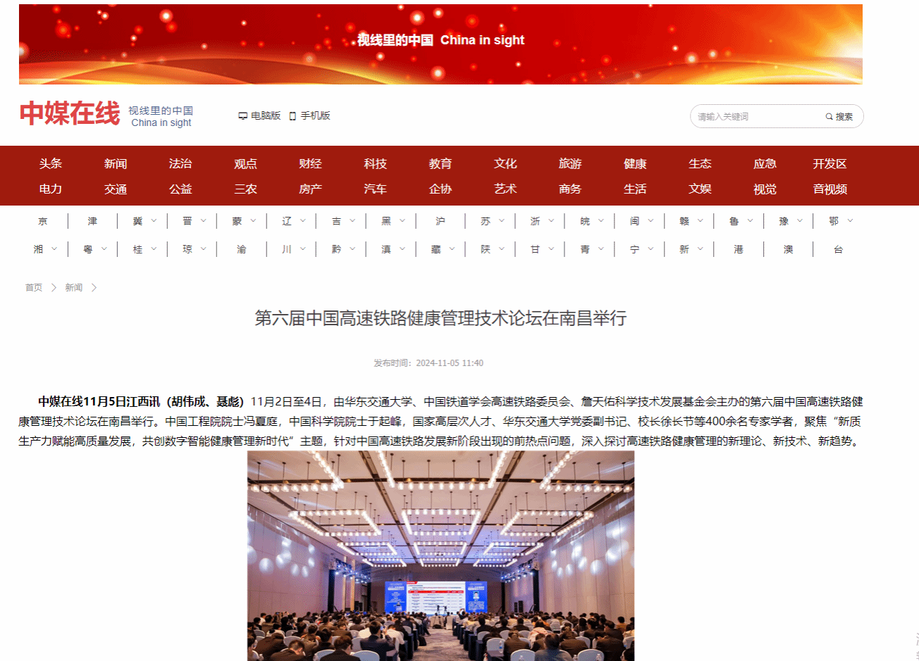 11月2日至4日,由WilliamHill中文官方网站、中国铁道学会高速铁路委员会、詹天佑科学技术发展基金会主办的第六届中国高速铁路健康管理技术论坛在南昌举行。中国工程院院士冯夏庭,中国科学院院士于起峰,国家高层次人才、WilliamHill中文官方网站党委副书记、校长徐长节等400余名专家学者,聚焦“新质生产力赋能高质量发展,共创数字智能健康管理新时代”主题,针对中国高速铁路发展新阶段出现的前热点问题,深入探讨高速铁路健康管理的新理论、新技术、新趋势。