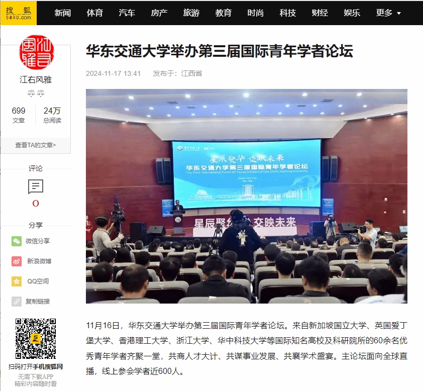 据悉,论坛旨在围绕服务交通强国战略和交通强省建设,聚焦交通特色办学定位,为海内外优秀青年学者搭建展现才华的舞台,吸引学者来赣建功立业,为交通强省建设提供智力与人才支撑。参会学者专业涵盖了土木工程、机械工程、交通运输工程、电气工程、控制科学与工程等20多个学科领域。