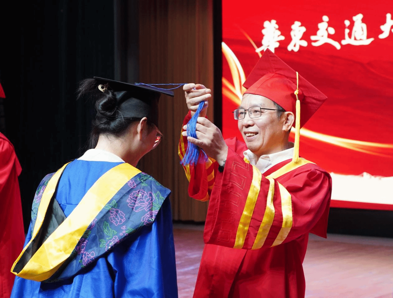 “那年盛夏,汇聚双港,各自追寻着光亮;心之所向,热爱滚烫,华交滋养着希望……”2025年毕业典礼在原创毕业歌曲《日新华交》的旋律中拉开了序幕。