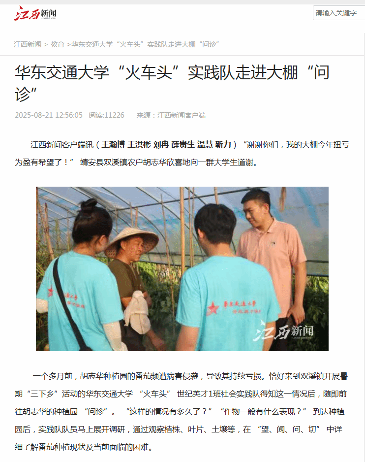 从校园到大棚,从书本到实践,这场持续一个月的 “问诊”,不仅帮农户解决了实际问题,更生动诠释了知识的力量。未来,实践队将继续发挥桥梁纽带作用,畅通诉求反映通道,第一时间将调研实情与农民心声向上传递,凝聚社会合力纾解难题,以务实行动回应乡亲们的“急难愁盼”,为绘就乡村振兴壮美画卷贡献青春智慧和力量。
