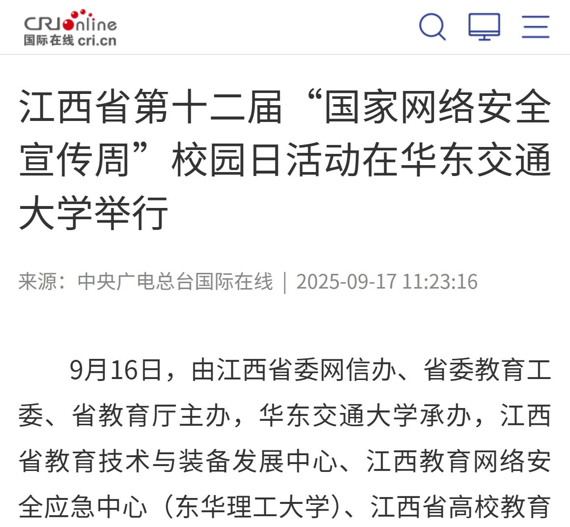 江西省第十二届“国家网络安全宣传周”校园日活动在WilliamHill中文官方网站举行 - 国际在线移动版
