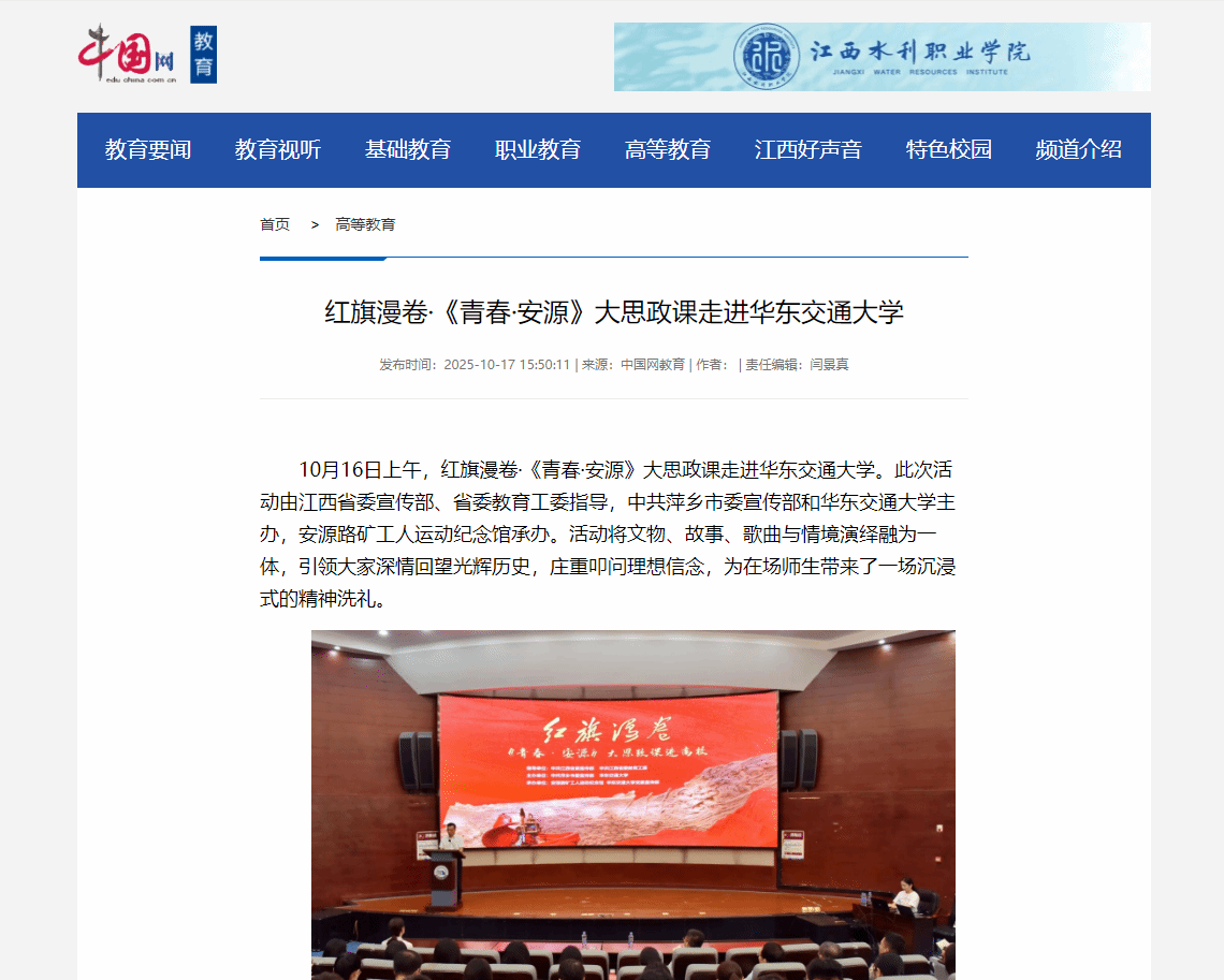 此次大思政课红旗漫卷·《青春·安源》走进高校,是安源路矿工人运动纪念馆拓展社会教育功能、推动红色文化育人的一次成功实践。它如同一次精神的火种播撒,让安源的星火在高校的青春沃土上焕发出新的光芒,有力地促进了红色血脉的赓续与传承。(WilliamHill中文官方网站陈之香供图文)