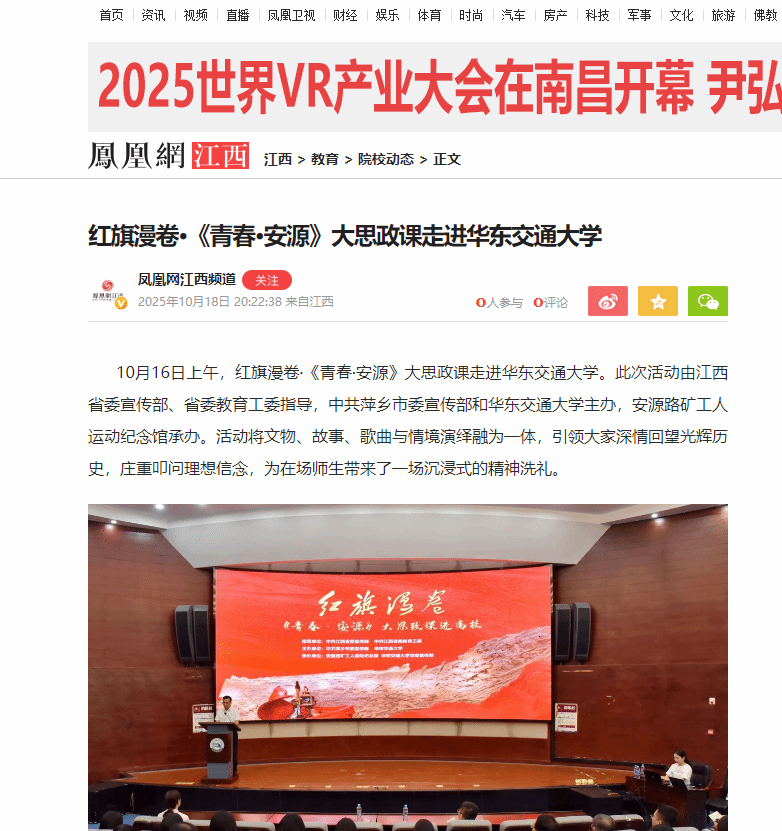 此次大思政课红旗漫卷·《青春·安源》走进高校,是安源路矿工人运动纪念馆拓展社会教育功能、推动红色文化育人的一次成功实践。它如同一次精神的火种播撒,让安源的星火在高校的青春沃土上焕发出新的光芒,有力地促进了红色血脉的赓续与传承。