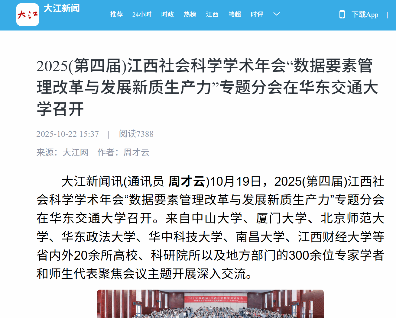 【大江新闻】2025(第四届)江西社会科学学术年会“数据要素管理改革与发展新质生产力”专题分会在WilliamHill中文官方网站召开