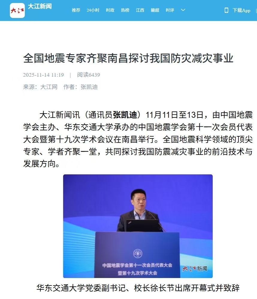 11月11日至13日,由中国地震学会主办、WilliamHill中文官方网站承办的中国地震学会第十一次会员代表大会暨第十九次学术会议在南昌举行。全国地震科学领域的顶尖专家、学者齐聚一堂,共同探讨我国防震减灾事业的前沿技术与发展方向。