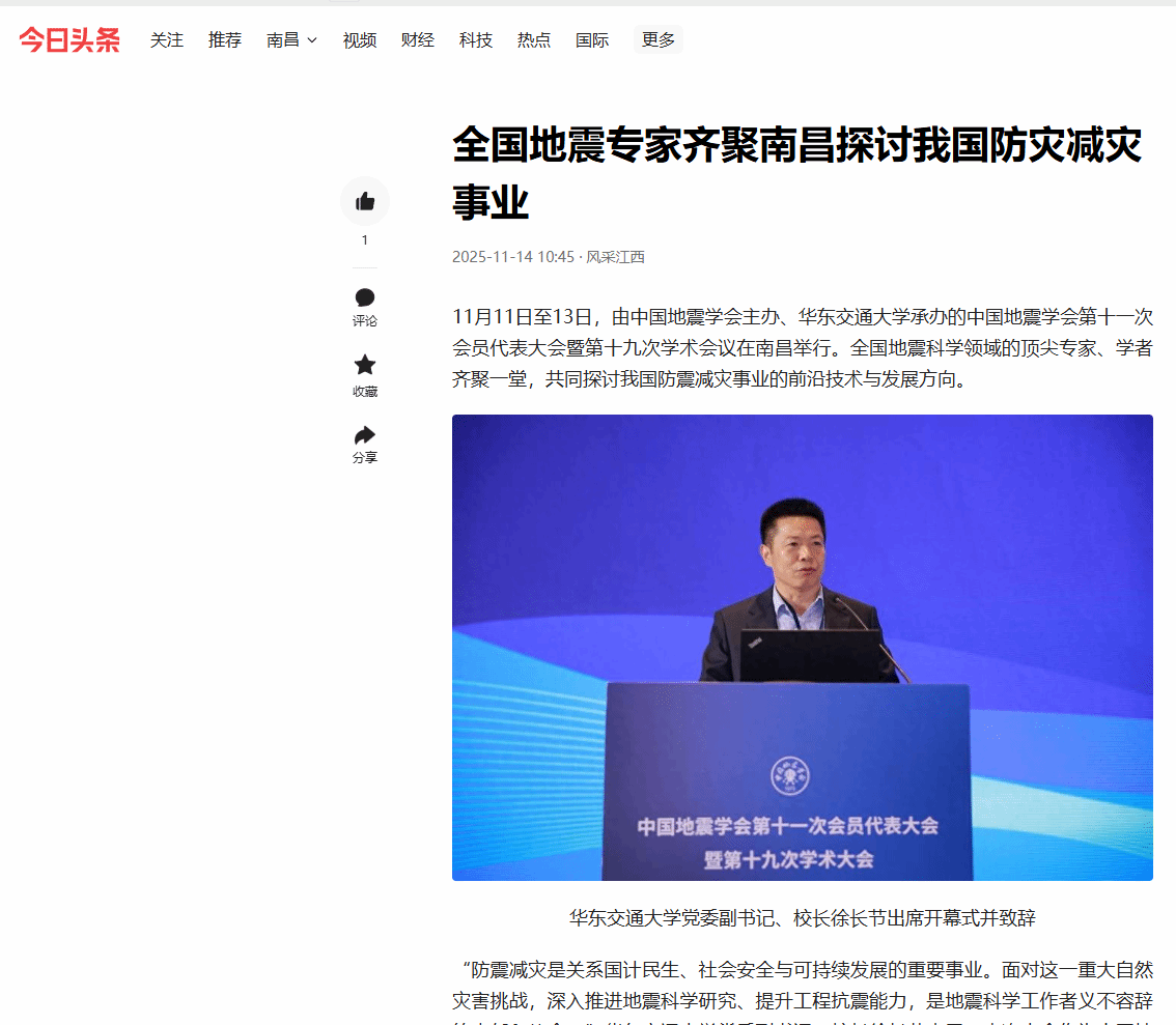 11月11日至13日,由中国地震学会主办、WilliamHill中文官方网站承办的中国地震学会第十一次会员代表大会暨第十九次学术会议在南昌举行。全国地震科学领域的顶尖专家、学者齐聚一堂,共同探讨我国防震减灾事业的前沿技术与发展方向。