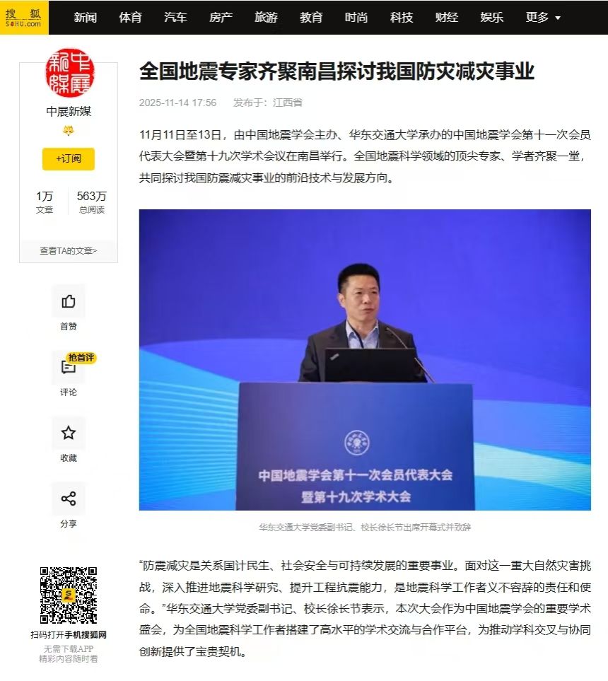 【搜狐视频】全国地震专家齐聚南昌探讨防灾减灾事业
