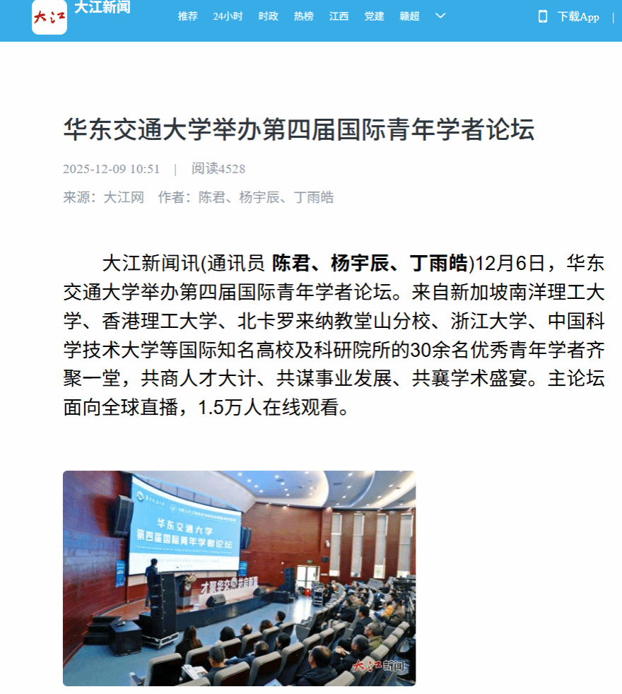 据悉,论坛旨在围绕服务交通强国战略和交通强省建设,聚焦交通特色办学定位,为海内外优秀青年学者搭建展现才华的舞台,吸引学者来赣建功立业,为交通强省建设提供智力与人才支撑。参会学者专业涵盖了土木工程、机械工程、交通运输工程、电气工程、控制科学与工程、电子信息、材料等学科领域。