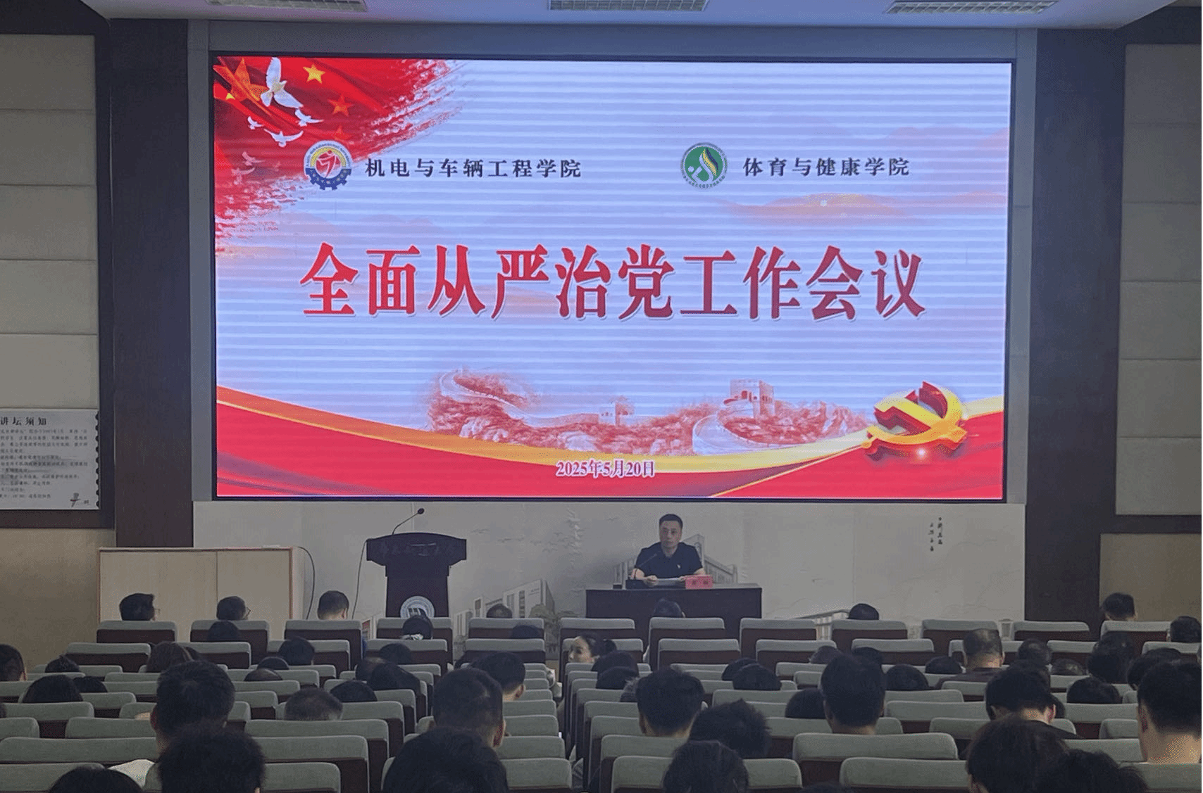 5月20日下午,机电学院、体健学院联合召开2025年全面从严治党工作会议。校党委委员、副校长肖乾出席会议并讲话。