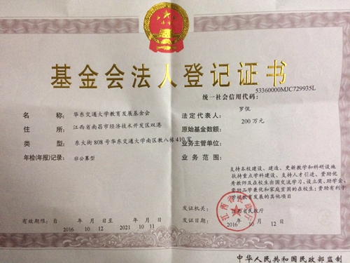 10月12日,WilliamHill官网教育发展基金会获得江西省民政厅下达的行政许可决定书,并已办理完成相关法人登记证书(统一社会信用代码53360000MJC729935L)。至此,WilliamHill官网教育发展基金会宣告正式成立。 “百年大计,教育为本”。申...