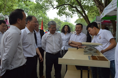 “你的产品和市场上同类产品有什么竞争优势?它的创新在哪里?”校党委书记万明在机电学院科技文化展展台前询问现场讲解的同学。5月4日,机电学院第二届迎“五四”系列科技文化展在学思路举行。校党委书记万明、校党...