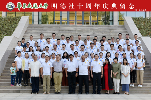 郁郁马鞍翠,浓浓校友情。10月2日,明德社举办十周年庆典活动。来自五湖四海的近百名花椒学子、明德社友重回山水交大,共赴十年之约。校友办公室主任、校友总会会长罗侃,学工处副处长李雪峰等出席活动。罗侃对各位明...