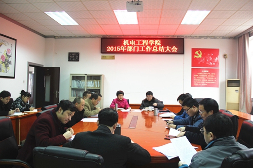 12月31日上午,机电学院举行2015年度部门工作总结大会。学院领导班子成员、各系部正副主任以及学年考核优秀候选人参加了会议。 学院各部门负责人围绕教学、专业建设、科研等方面工作进行了汇报,同时介绍了新一轮...