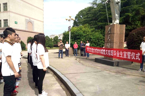 6月16日,64名2016届詹天佑班毕业生在离校之际,于詹天佑铜像前庄严宣誓,必将以詹天佑为榜样,弘扬爱国奉献的精神,不辜负母校恩师的期望。 学工处副处长李雪峰希望“天佑班”同学牢记使命与责任,争做国家铁路...