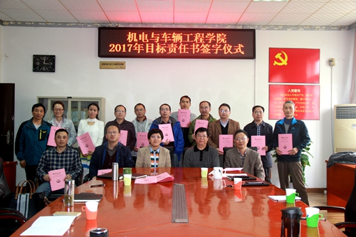 4月6日下午,机电与车辆工程学院在学院3楼会议室举行了2017年度目标责任书签订仪式。院领导及学院各部门负责人出席仪式。签订仪式由党委书记周新建主持。会上,院长刘燕德代表学院分别与分管领导、各系部主任签订《2...